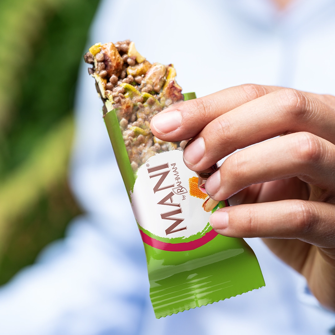 Mani Nutbars consists of nutritious and tonic nuts and seeds, chocolate and honey and has six varieties that, while responding to the diverse tastes and needs of people, provide the vitamins and minerals needed by the human body and promise a natural and healthy snack. gives